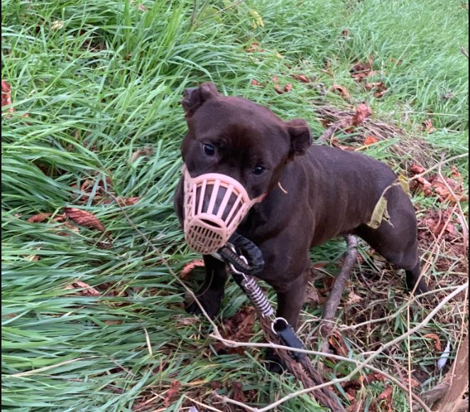 E’ così che, in una parte nascosta della vegetazione, gli operatori hanno individuato un cane meticcio tipo pitbull di colore marrone, di taglia media, e che guaiva disperato. Il cane, con le orecchie tagliate, era denutrito e assetato e cercava disperatamente di togliersi la museruola strofinando il muso per terra. Gli agenti hanno subito avvertito il canile, poi hanno tolto al povero animale, assolutamente mansueto, il collare legato corto, e la museruola, così ha potuto almeno bere.
