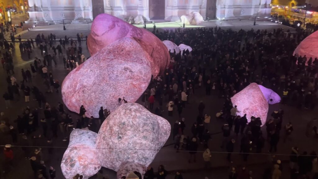 I megaliti di Iwagumi lasciano Piazza Maggiore. VIDEO