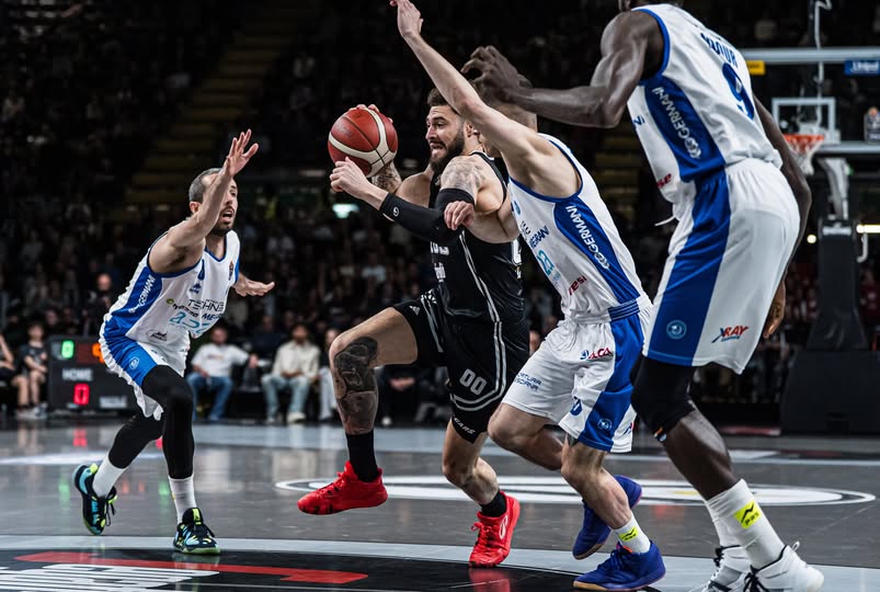 La Segafredo subisce nel primo tempo e va a -15 sotto la pioggia di triple bresciane (8/11 all’intervallo). Ma il secondo tempo è una sinfonia fatta di palle perse ospiti (17), recuperi (12) e canestri. Cordinier il migliore in campo con 21 punti e 4 assist, Pajola dà l’esempio a inizio terzo quarto, protagonista dell’11-0 che gira il match al rientro. Grande prova anche di Daniel Hackett, e bene Clyburn, 15 punti e 24 di valutazione cn 6 rimbalzi e 5 assist nonostante qualche errore di troppo. Nel momento difficile è stato sempre Shengelia la principale risorsa bianconera, buine apparizioni per Zizic e anche Holiday.