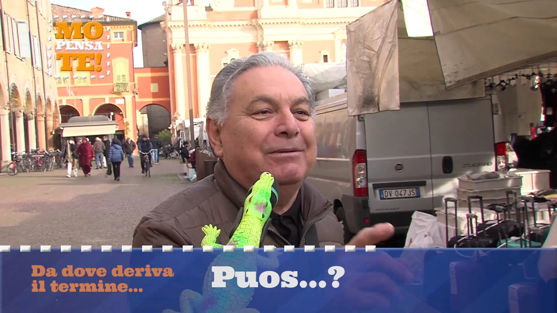 Andrea Barbi ed il suo inseparabile coccodrillo nelle strade e nelle piazze di tutta la regione, alla scoperta dell’origine delle tradizioni e dei modi di dire più divertenti.