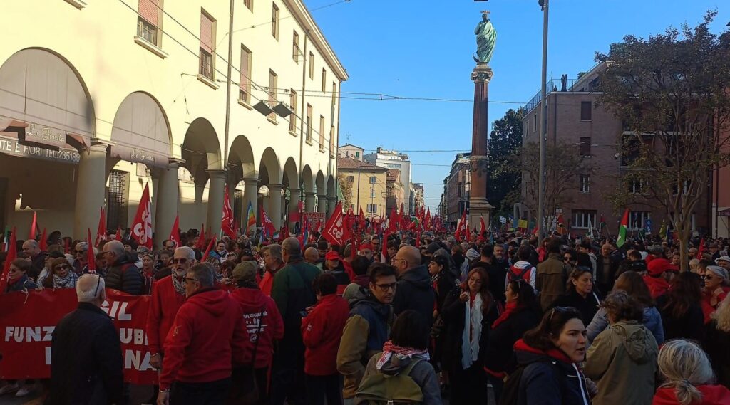 A Bologna già tanta gente in piazza, spiccano le tante bandiere della Cgil